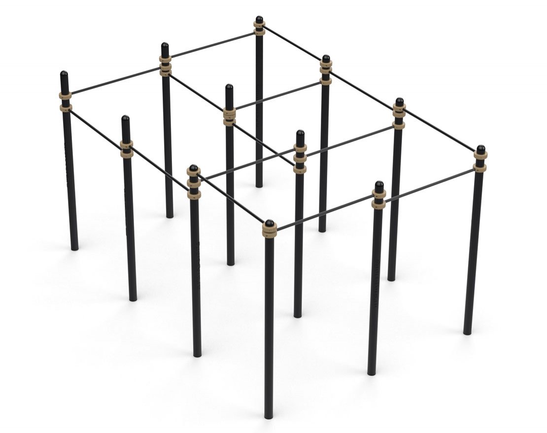 Данная конструкция состоит и 12 столбов 15 перекладин диаметром 34 мм. Комплекс предназначен для базовых подтягиваний, а также для выполнения разнообразных фристайл-элементов для любителей и продвинутых паркурщиков.