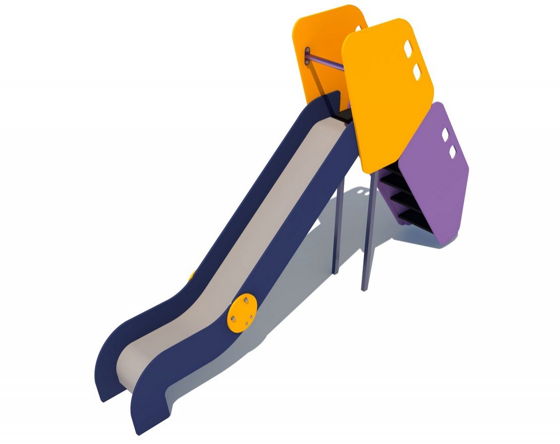 Скат горки изготовлен из единого листа нержавеющей стали толщиной 1,5 мм и утоплен в паз фанерного борта. Наличие бортов горки высотой 100 мм обязательно в целях исключения травмирования детей. Горка должна иметь стартовую площадку с перекладиной сечением Ø 27 мм, заставляющую ребенка присесть, полосу разгона и участок торможения. Ступеньки лестницы горки должны быть выполнены из ламинированной нескользящей влагостойкой ламинированной фанеры толщиной 18 мм.