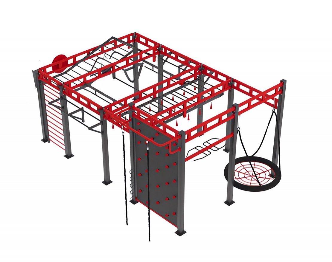 • В комплект входит: брусья, канат, турник, шведская стенка, рукоход, скалодром, груша, качель-гнездо, скамья