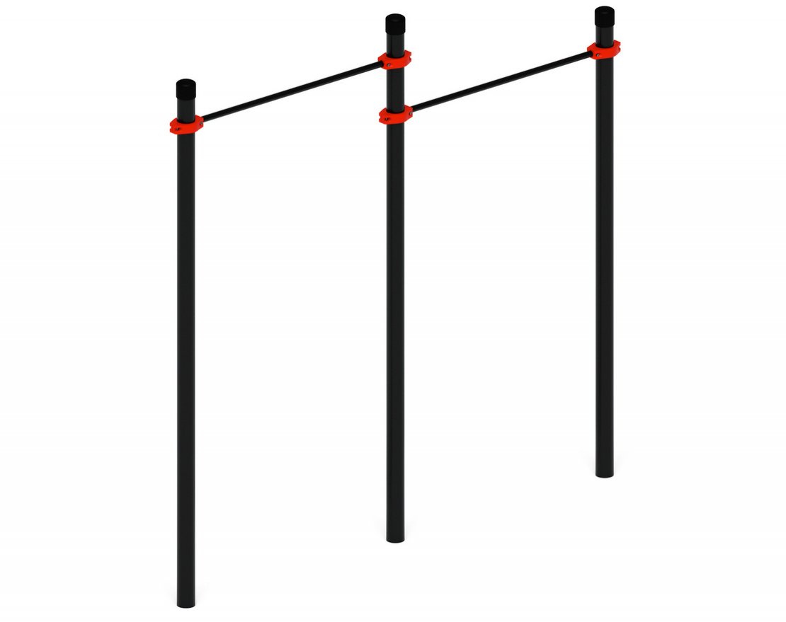 Комплекс состоит из трёх опорных столбов, изготовленных из стальной трубы диаметром ⌀89 мм и толщиной стенки 3.5 мм, и двух перекладин, закреплённых при помощи хомутов на высоте 2 500 и 2 200 миллиметров от земли. Хомуты выполнены в виде разъёмных частей, которые соединяются между собой при помощи винтов М10. В верхней части опорных столбов установлены пластиковые полусферические заглушки или заглушки по ГОСТ 17379–2001, что обеспечивает безопасность использования комплекса.