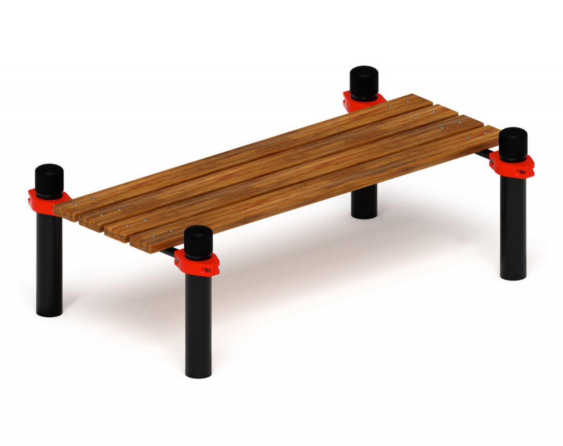 Лавка крепится к опорным стойкам при помощи специальных хомутов, которые обеспечивают надёжное соединение. Перекладины, соединяющие опорные стойки, изготовлены из труб диаметром 32 мм с толщиной стенки 2.8 мм. Лавка выполнена из четырёх досок толщиной не менее 40 х 90 мм и длиной 1600 мм, обработанных морилкой для защиты от внешних воздействий и покрытых лаком.