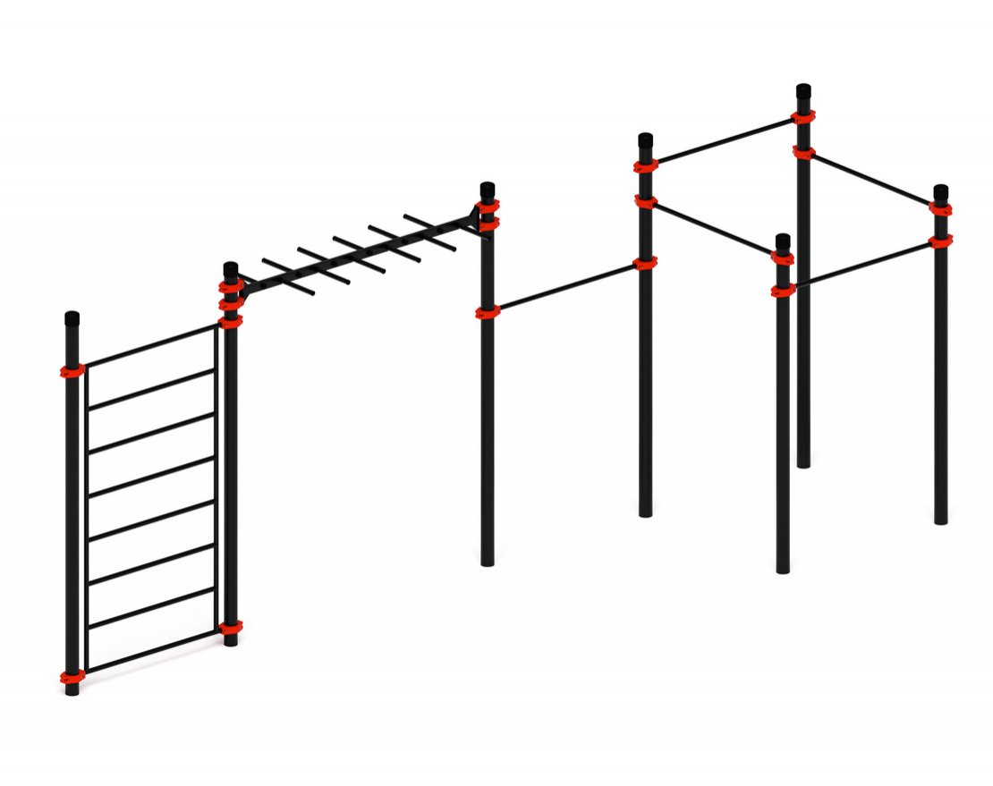 Комплекс представляет собой набор из опорных столбов и спортивных снарядов, расположенных на улице. Комплекс состоит из семи опорных столбов, выполненных из трубы диаметром 89 мм с толщиной 3,5 мм, которые обеспечивают надёжность конструкции. Столбы различаются по высоте: 4 столба высотой 2600 мм и 3 столба — 2300мм.