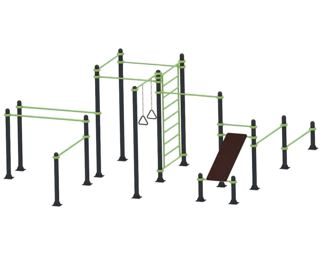 Представляем вашему вниманию уличный комплекс для воркаута, который состоит из различных спортивных снарядов и позволяет выполнять разнообразные упражнения на свежем воздухе. Этот комплекс идеально подходит для поддержания отличной физической формы и здорового образа жизни.