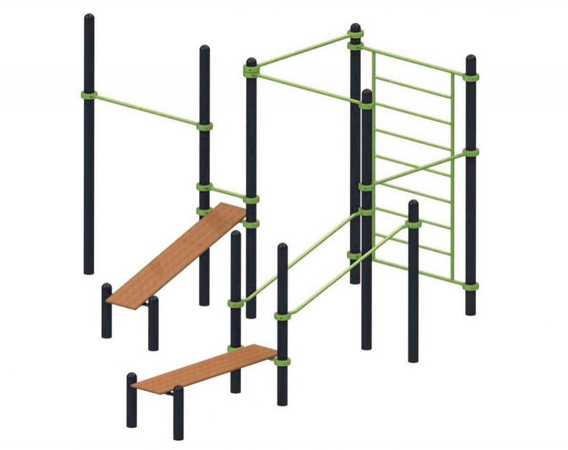 Уличный параворкаут TORUDA комплекс с двумя скамьями 003