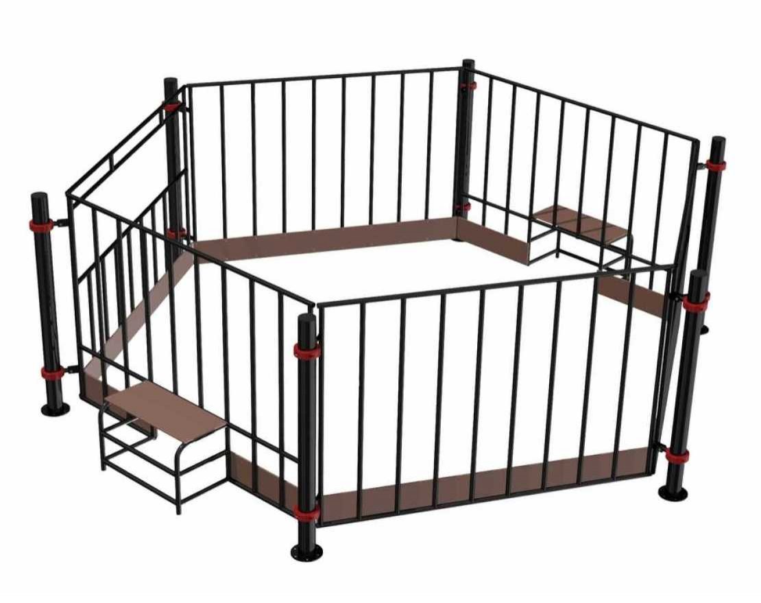 - Ограждение собрано из прочных металлических труб диаметром 89 и 22 мм, сечением 50х25 мм.