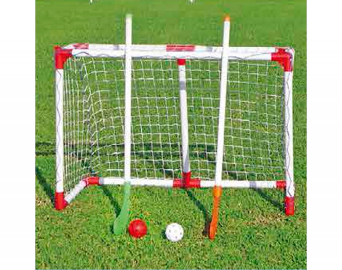 Игровой набор для хоккея на траве GOAL101A отлично подходит для проведения активного семейного отдыха. В комплект входят ворота, две клюшки и два мячика ( изготовлены из пластика) красного и белого цвета. Складная конструкция позволяет брать комплект с собой. В комплекте 8 анкеров.