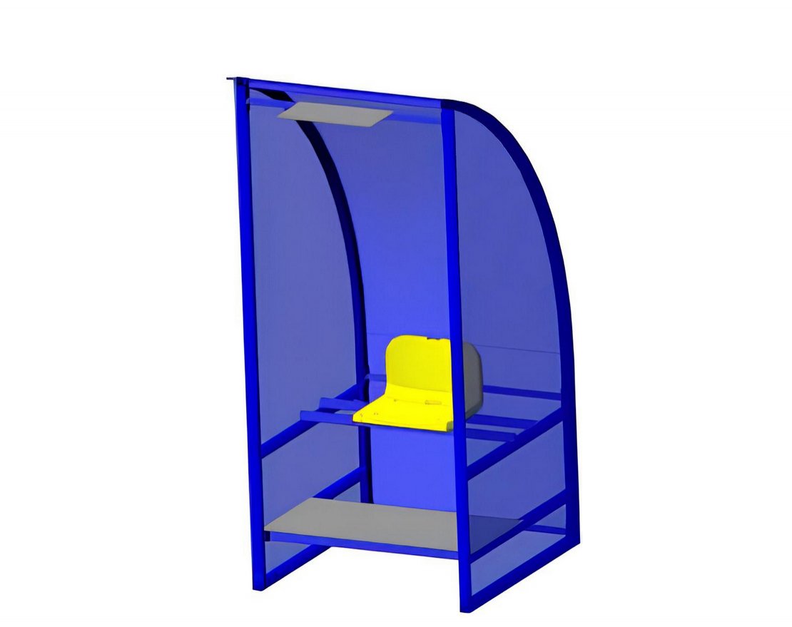 Эта кабинка для судей является надёжной и функциональной конструкцией, которая соответствует всем необходимым требованиям для проведения спортивных соревнований.