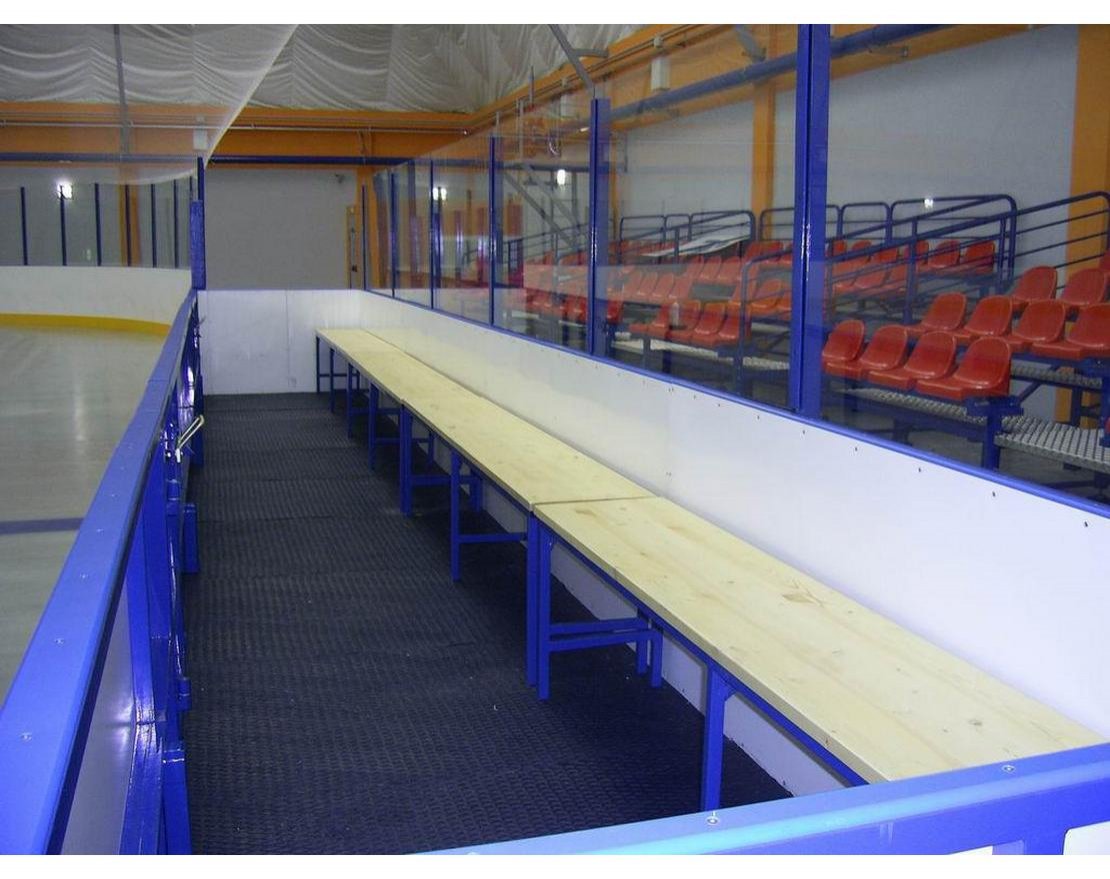 Бокс оборудован скамейками по всей длине, что позволяет игрокам отдохнуть и восстановить силы перед выходом на площадку. Все металлоконструкции покрыты полимерно-порошковой синей краской, которая устойчива к механическим повреждениям и сохраняет свой цвет даже при интенсивном использовании.