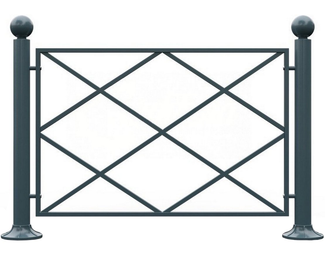 Все элементы ограждения покрыты порошковой краской. Цвет окрашивания по каталогу RAL Материалы, используемые для изготовления ограждений, соответствуют ГОСТ 13663-86 «Трубы стальные профильные. Технические требования (с изменениями 1,2,3)», ГОСТ 8639- 82 «Трубы стальные квадратные. Сортамент (с изменениями 1,2,3,4)», ГОСТ 10704-91 «Трубы стальные электросварные прямошовные. Сортамент (с изменениями 1,2)». Осуществляется по средством бетонирования стоек и дальнейшей сварки стоек и самой секции.