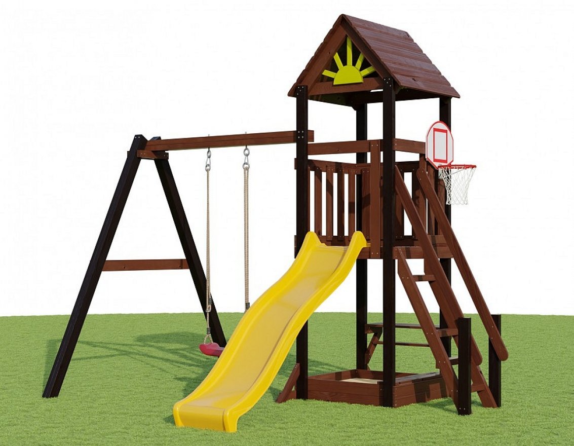 Площадку легко установить на участке, а материалы, из которых она изготовлена, отличаются высоким качеством. Все элементы тщательно отшлифованы и окрашены, что обеспечивает долговечность и безопасность конструкции.