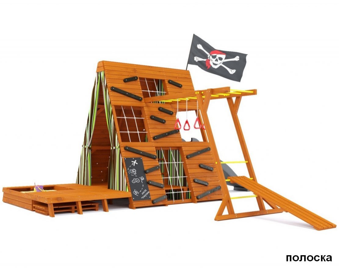 Игровой комплекс выполнен из качественных материалов и имеет прочную конструкцию, что обеспечивает безопасность детей во время игр.