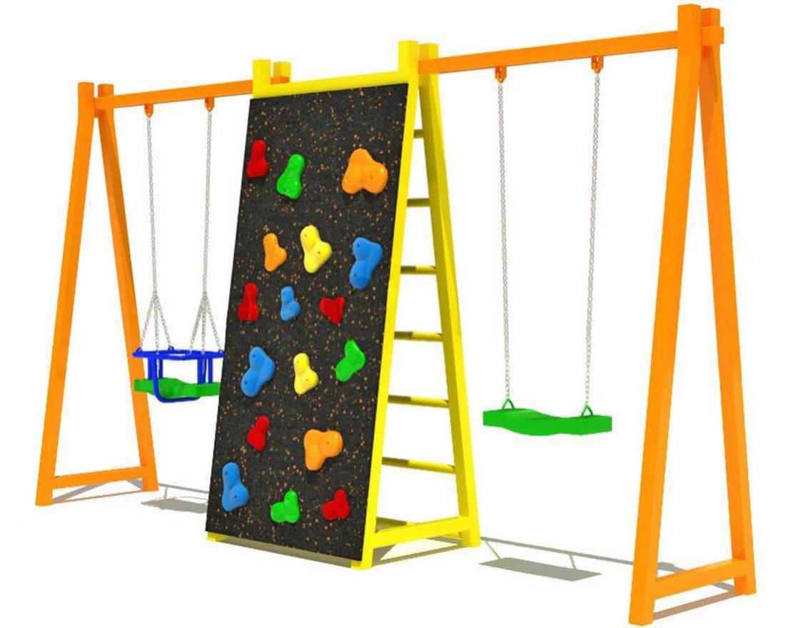 Для самых маленьких предусмотрены качели с детским сидением, оснащенным специальной защитой. Для подросших непосед есть классические качели с удобным пластиковым сидением. Специально сконструированная стена для скалолазания подарит малышам новые умения, позволит гармонично развиваться физически, а классическая лестница, установленная под уклоном, обладает практически неисчерпаемым запасом возможностей и вариантов применения в детских играх.