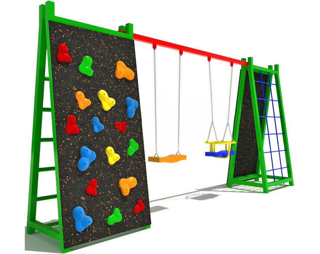 Детский спортивно-развлекательный комплекс сочетает в себе всё для весёлого и полезного времяпрепровождения. Две качели для детей, одна с защитой для самых маленьких, позволят всласть качаться и веселиться, две лестницы и стены для скалолазания станут отличным источником впечатлений и эмоций.