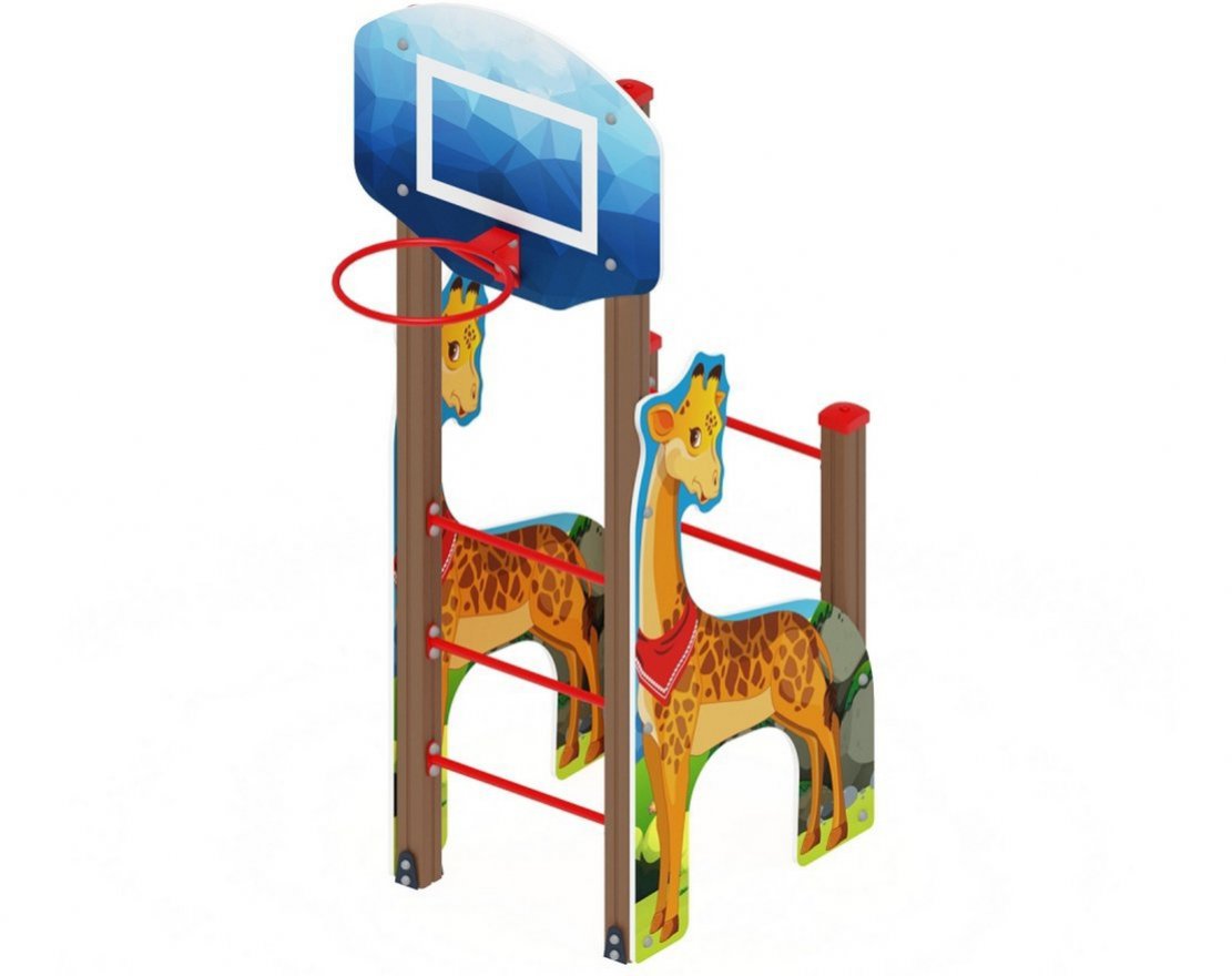 Борт выполнен из березовой фанеры толщиной 18мм, и габаритами 1000*1800. Фанера имеет тщательную обработку торцов и окраску желтого цвета. Стилизован под жирафа.