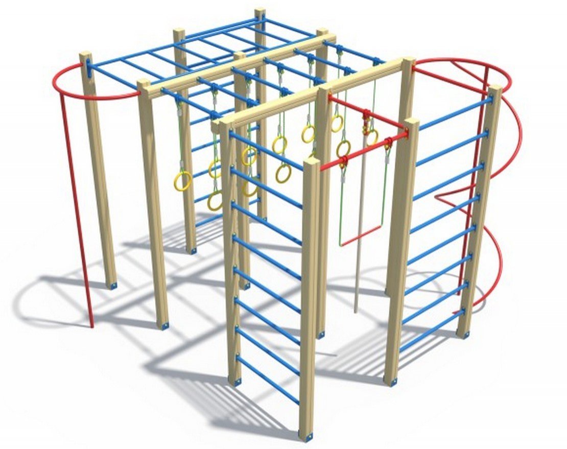 • В комплект входит: канат, гимнастические кольца, турник, гимнастическая трапеция, шведская стенка, рукоход, кольцевой лаз