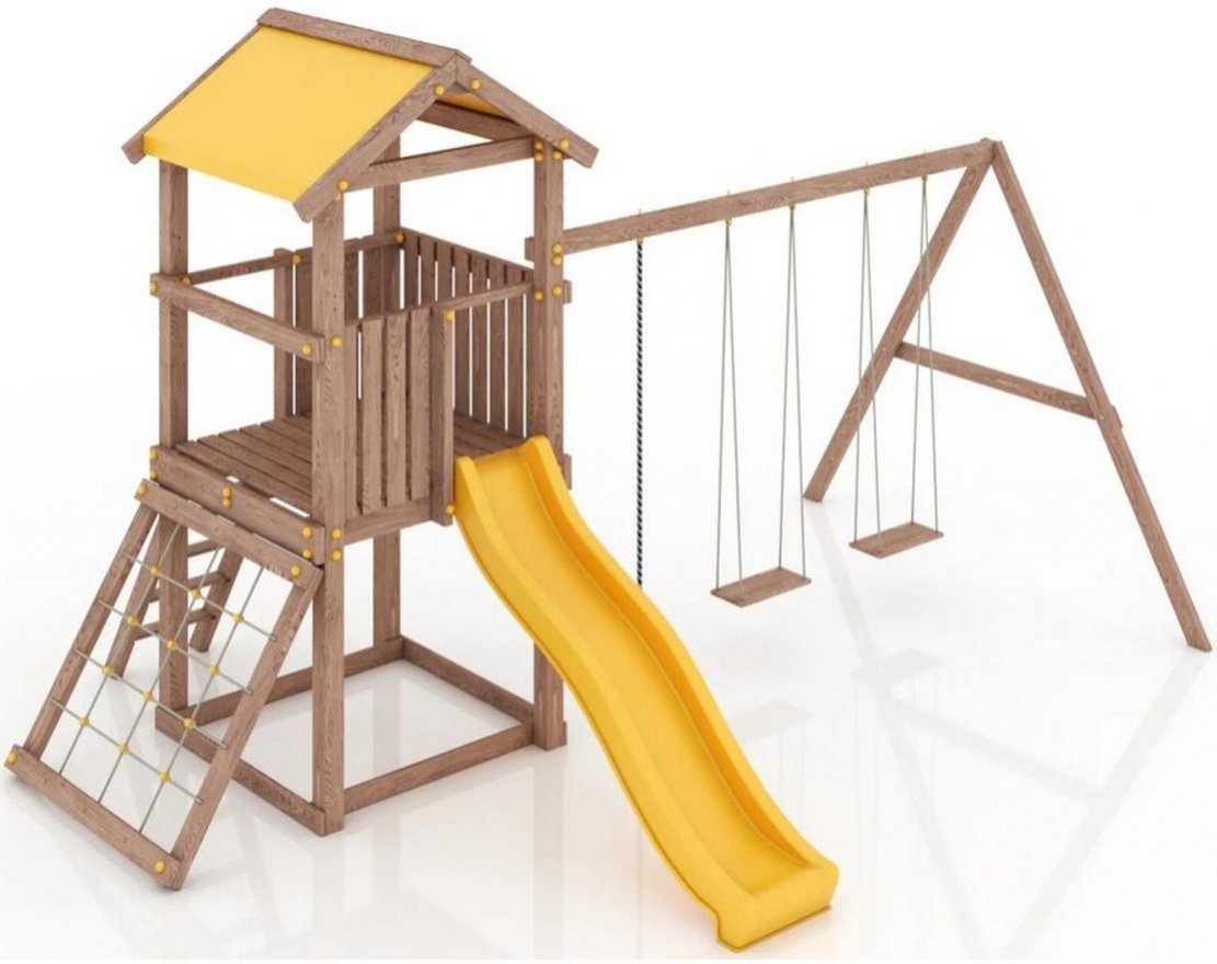 Дерево обработано пропиткой от плесени и защищено красящим составом широкого действия оттенка «тик». При желании вы можете покрасить площадку в любой другой цвет.