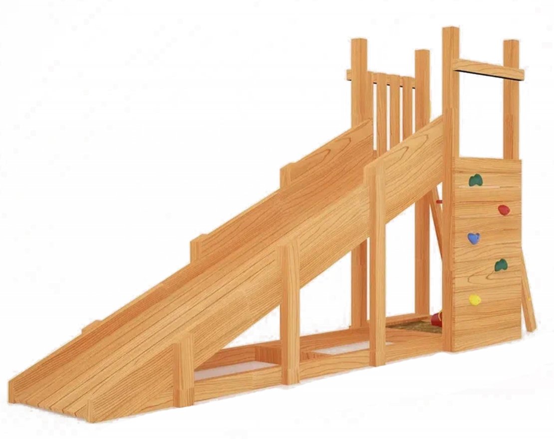 - Универсальность. Комплекс включает в себя горку, скалодром, лестницу, песочницу и скамейку. Это позволяет детям играть в разные игры и развивать разные навыки.