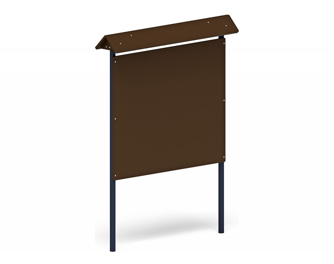Доска объявлений представляет собой сборную конструкцию, состоящую из двух стоек, щита и навеса: