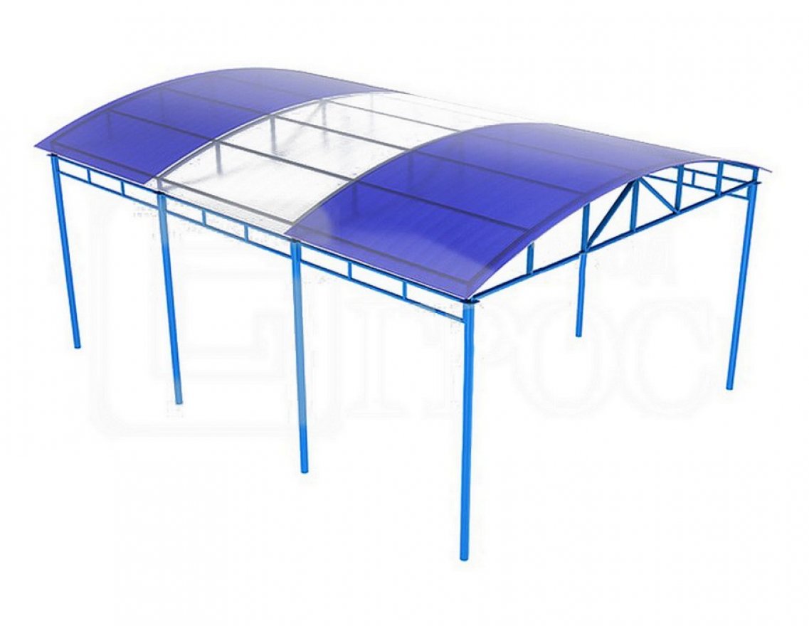 Навес изготавливается из металлической трубы диаметром 76мм, трубы размером 50*25мм, 40*20мм, и 25*25мм, окрашенных полимерно-порошковой краской, устойчивой к воздействию неблагоприятных погодных условий и ультрафиолета. Крыша выполнена из поликарбоната. Цвет и декоративные элементы согласовываются с Заказчиком. Длина 6300 мм, ширина(глубина) 4500 мм, высота 3000 мм.