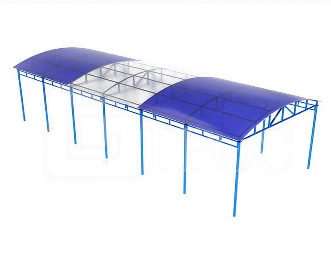 Навес изготавливается из металлической трубы диаметром 76мм, трубы размером 50*25мм, 40*20мм, и 25*25мм, окрашенных полимерно-порошковой краской, устойчивой к воздействию неблагоприятных погодных условий и ультрафиолета. Крыша выполнена из поликарбоната. Длина 10000 мм, ширина(глубина) 4500 мм, высота 3000 мм.
