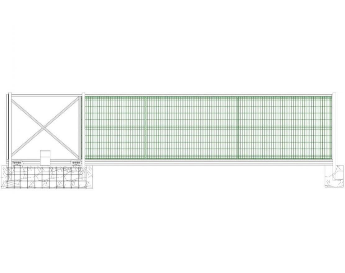 3. Рама ворот: изготовлена из профильной трубы 60×40×2 мм, что обеспечивает прочность и долговечность конструкции. Заполнение сетчатое, с ячейками 50×150 мм и прутком 5 мм.