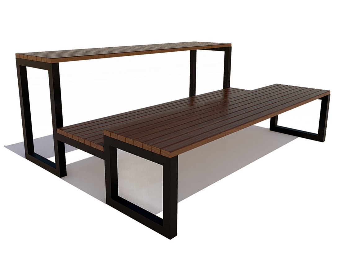 Двухуровневая скамья со стальным каркасом — это надёжная конструкция, которая предназначена для размещения зрителей на спортивных мероприятиях. Модель «Спортивная» имеет двухуровневую конструкцию с прямоугольными деревянными сиденьями и металлическими опорами, покрытыми полимерной порошковой краской для защиты от коррозии.