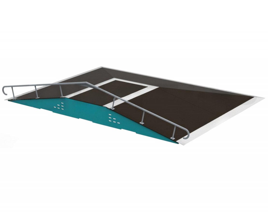 Фанбокс с рейлом и пирамидой предназначен для занятий скейтбордом в различных общественных пространствах: парках, во дворах, местах отдыха и т. д.