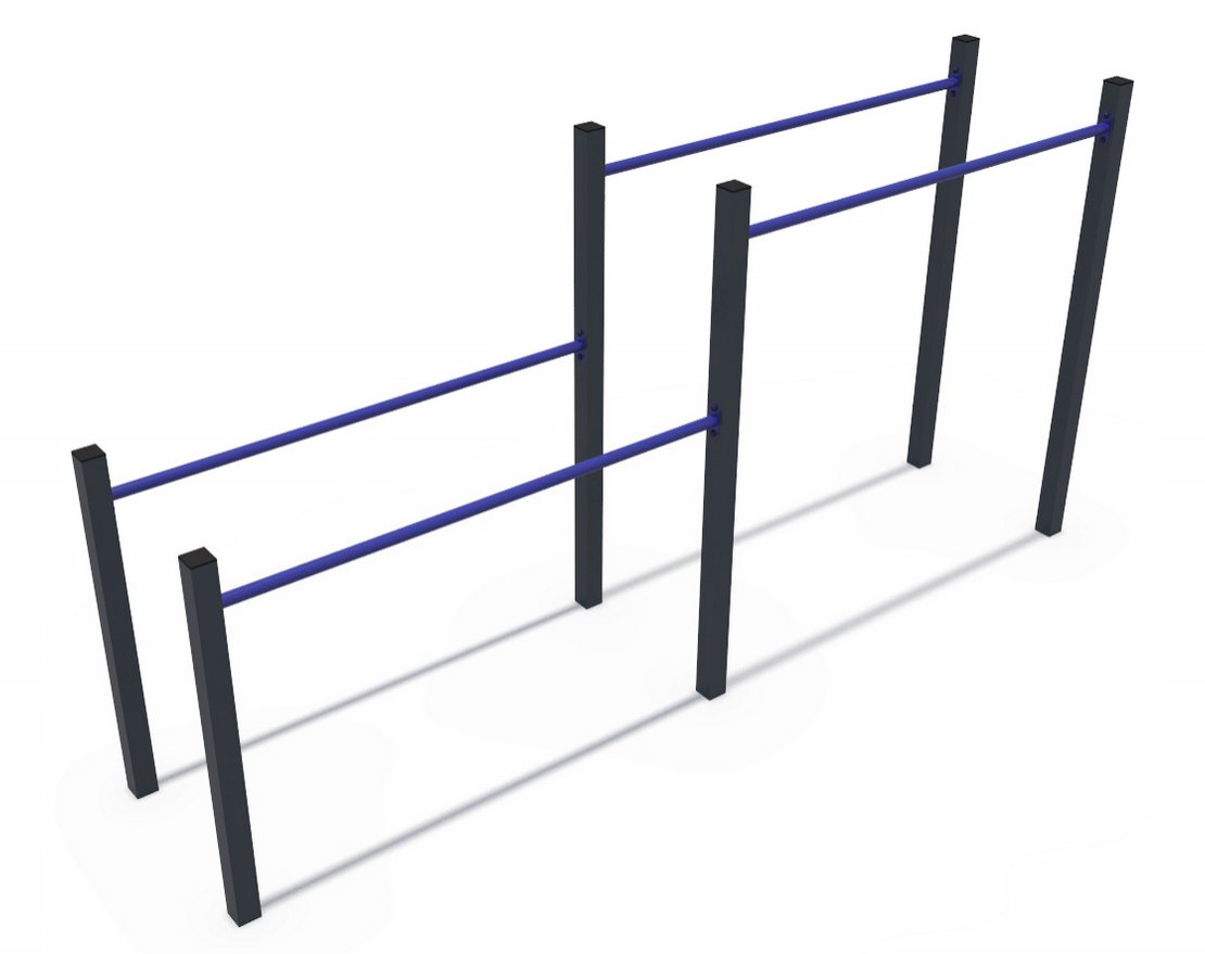 Данное уличное оборудование предназначено для установки на открытых площадках и соответствует всем стандартам безопасности. Оно изготовлено из прочной стали марки Ст3, что обеспечивает его долговечность и надёжность. В комплект входят брусья разной высоты: 100 и 140 см.