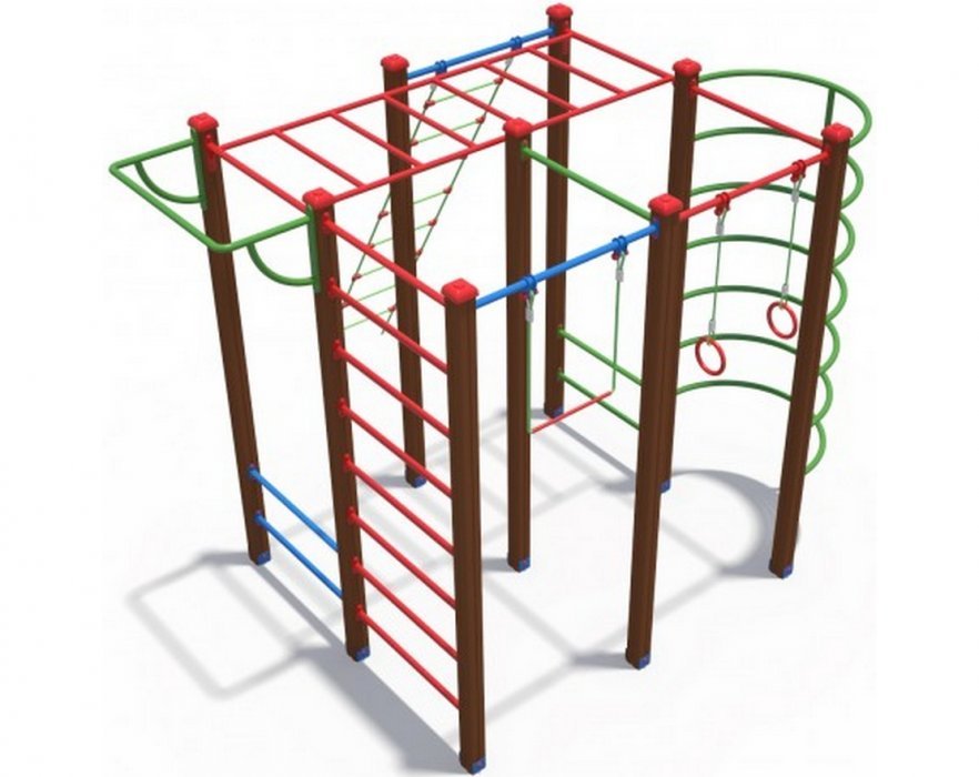 • В комплект входит: верёвочная лестница, гимнастические кольца, турник, гимнастическая трапеция, шведская стенка, рукоход