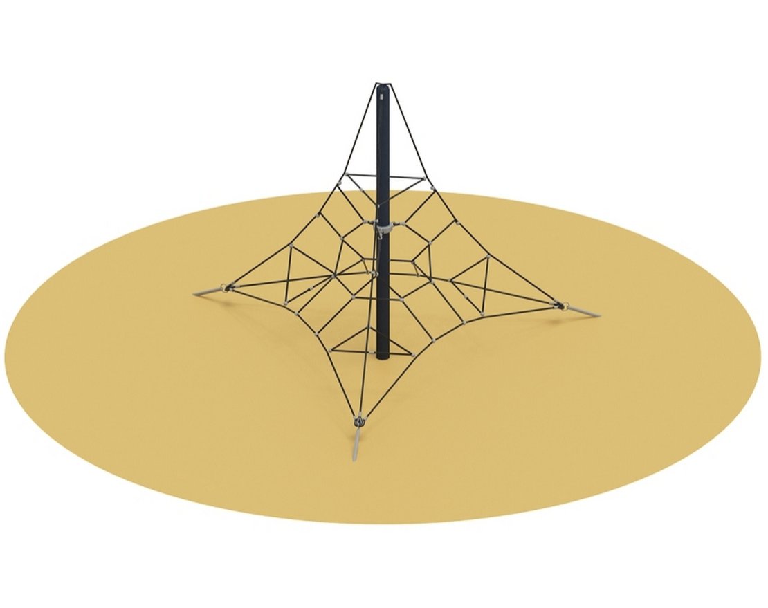 Сетка крепится к опорному столбу диаметром 133 мм, сверху на столб надевается металлическая вершина. С 3 сторон («лучами») конструкция крепится к поверхности игровой площадки с помощью талрепов, которые обеспечивают необходимое натяжение.