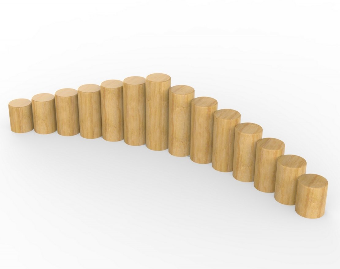 Это оборудование представляет собой полосу препятствий, которая состоит из ступенек, изготовленных из брёвен хвойных пород, и имеет следующие характеристики: