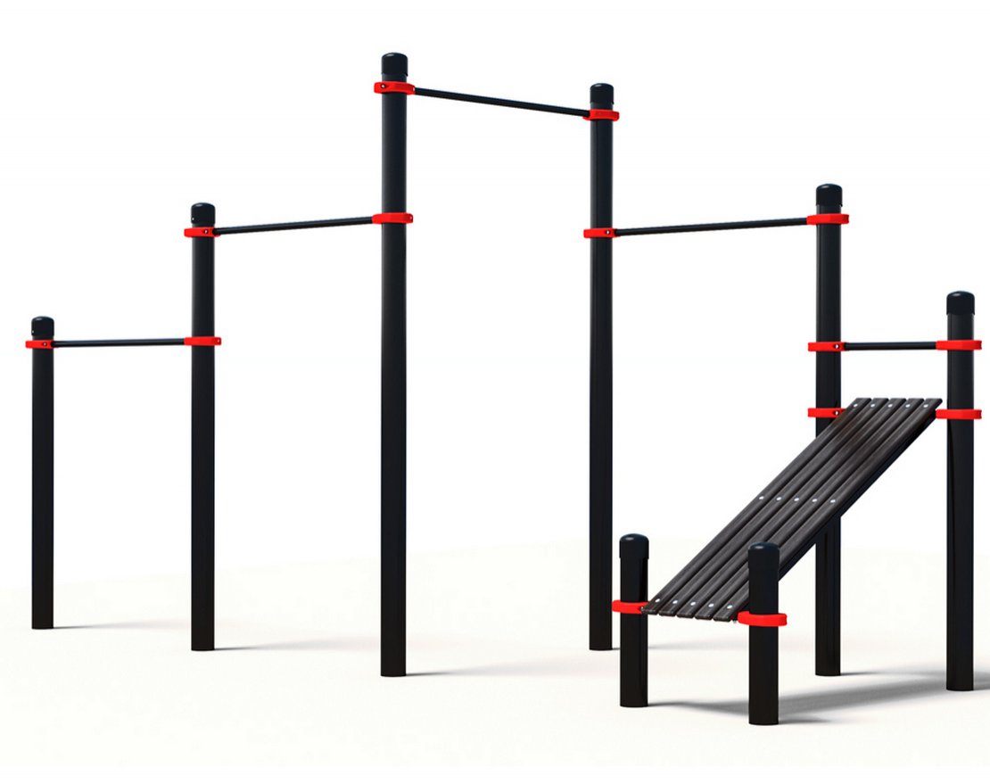 Каскад турников PAW-12 — это компактный спортивный комплекс для улицы, который может стать отличным дополнением к спортивной площадке во дворе многоквартирного или частного дома. Комплекс включает в себя: