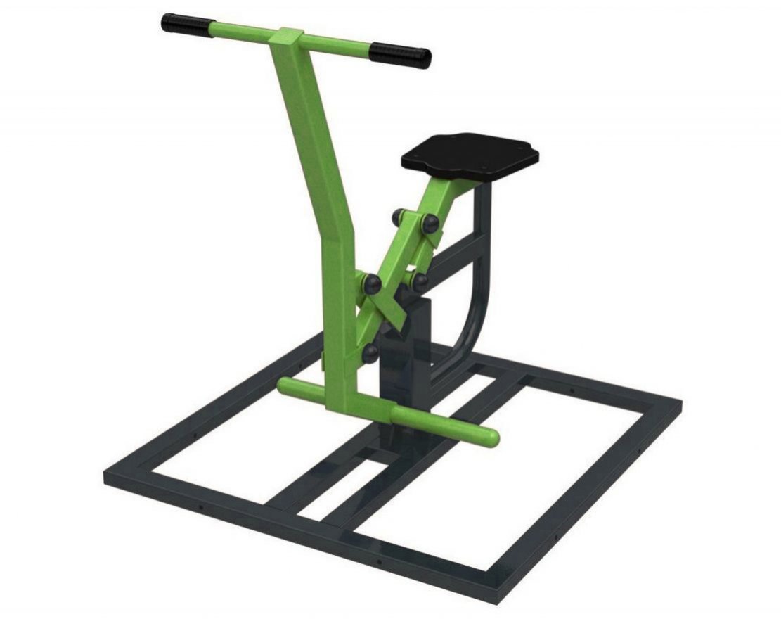 Тренажёр «Ковбой» на раме — это изделие из прочной стали с рифлёными рукоятками из ПВХ для предотвращения соскальзывания рук. Тренажёр оснащён подвижной рычажной системой и рассчитан на одного пользователя.