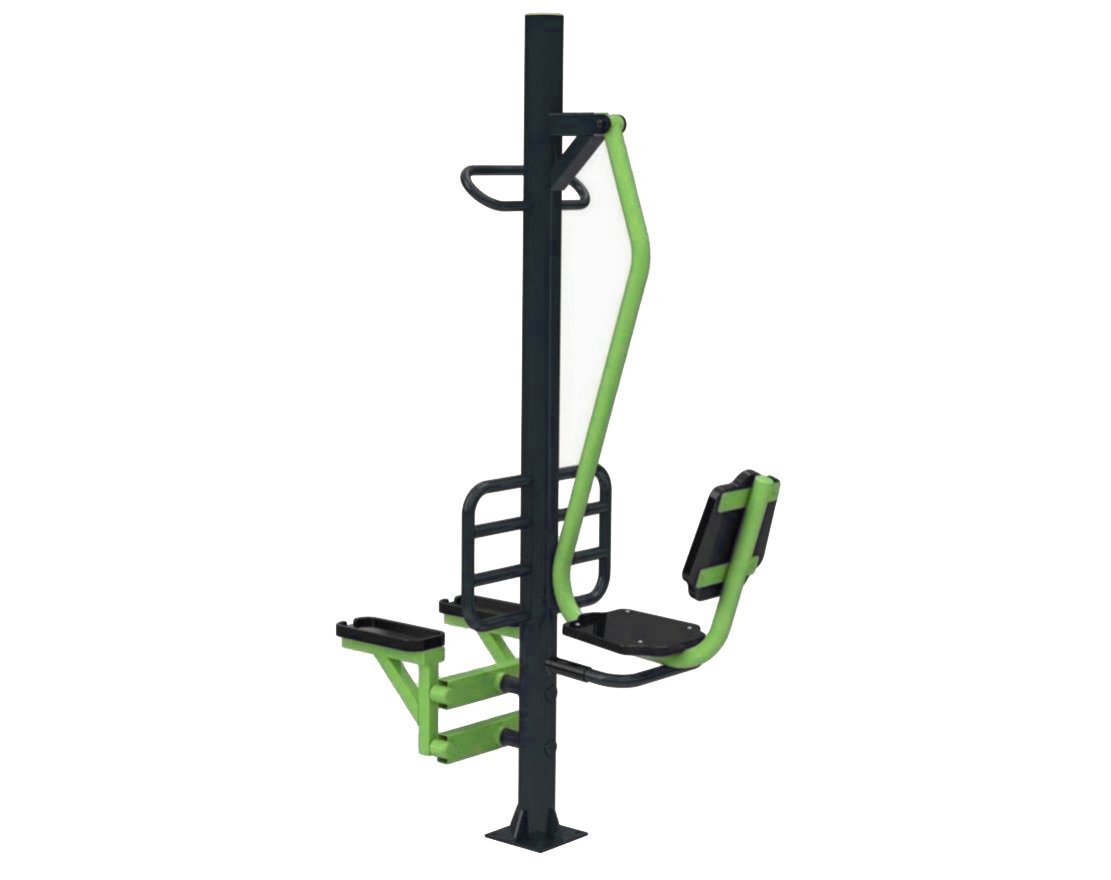 Уличный тренажёр «Жим ногами и степпер» — это изделие из прочной стали, предназначенное для тренировки различных групп мышц. Тренажёр оснащён подвижной рычажной системой и рассчитан на двух пользователей одновременно.