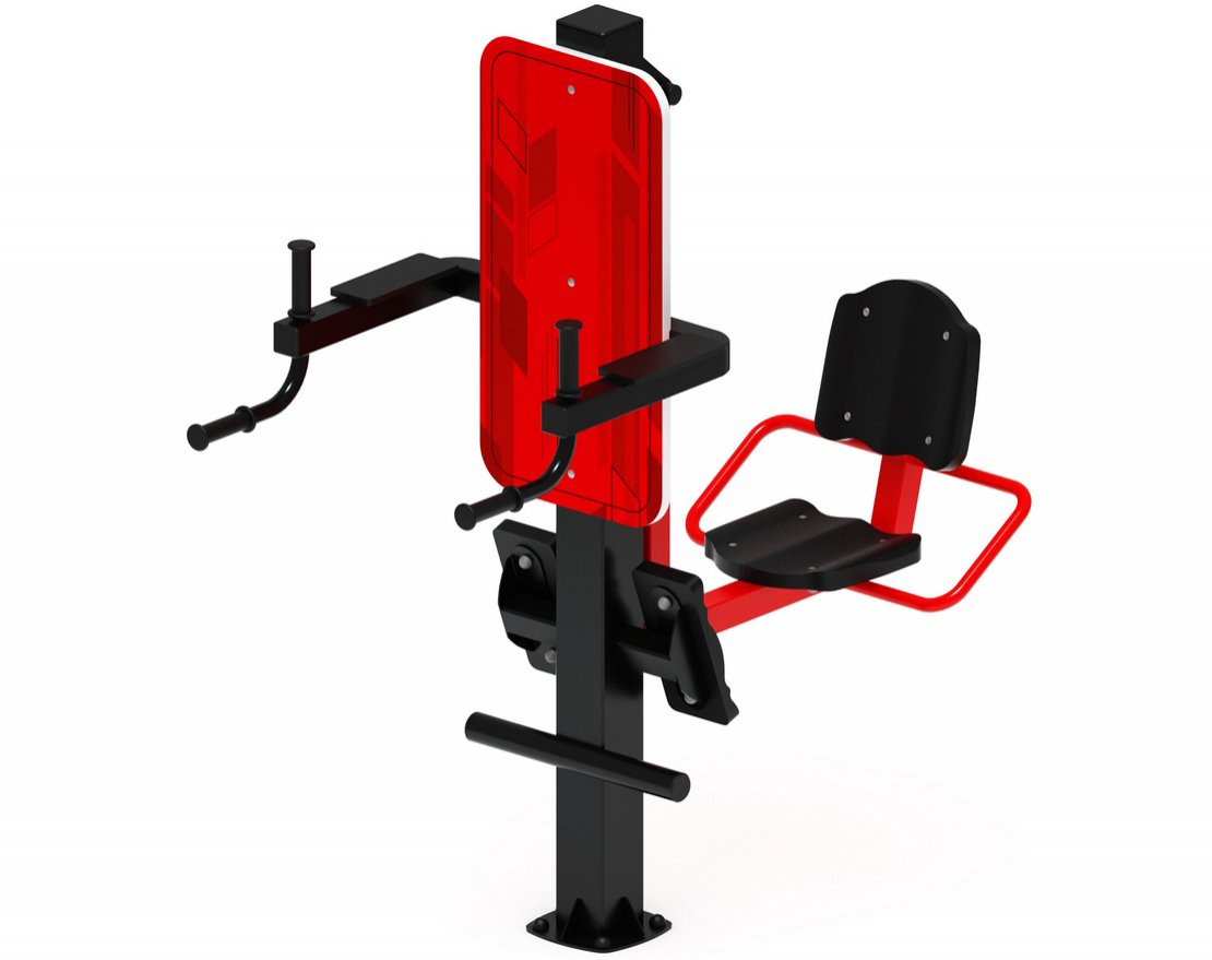 Сочетание красного и чёрного цветов придаёт этому варианту яркость и динамичность. Тренажёр будет хорошо смотреться на фоне зелени парка или двора.