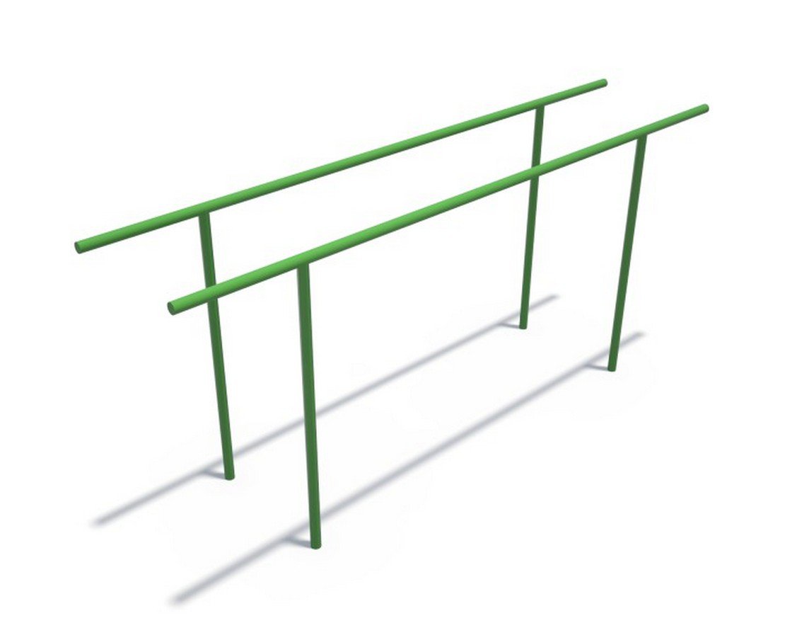 - Брусья выполнены из металла сечением 42 миллиметра. Металлические детали покрыты порошковой краской в заводских условиях, что обеспечивает их долговечность и устойчивость к внешним воздействиям.