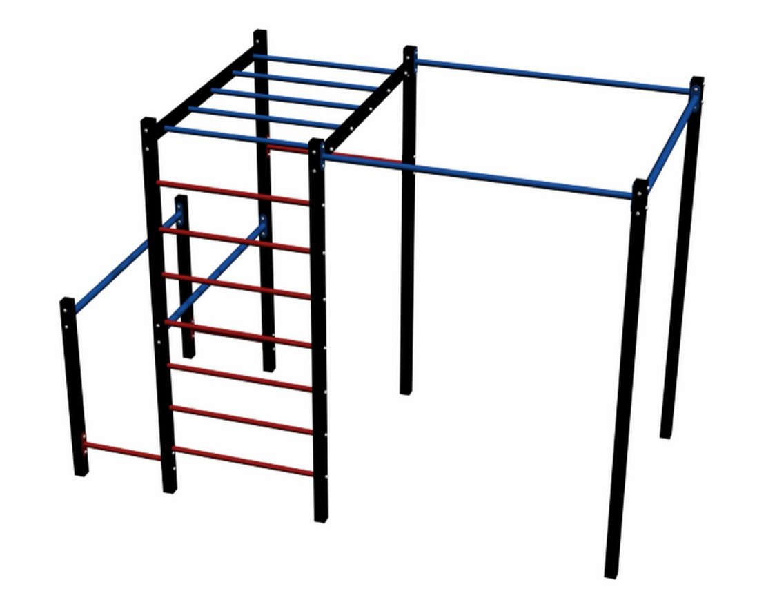 Workout w08 — это многофункциональный уличный спортивный комплекс, который можно установить как на даче, так и на придомовой территории. Комплекс включает в себя несколько снарядов: турник, брусья, шведскую стенку и рукоход.