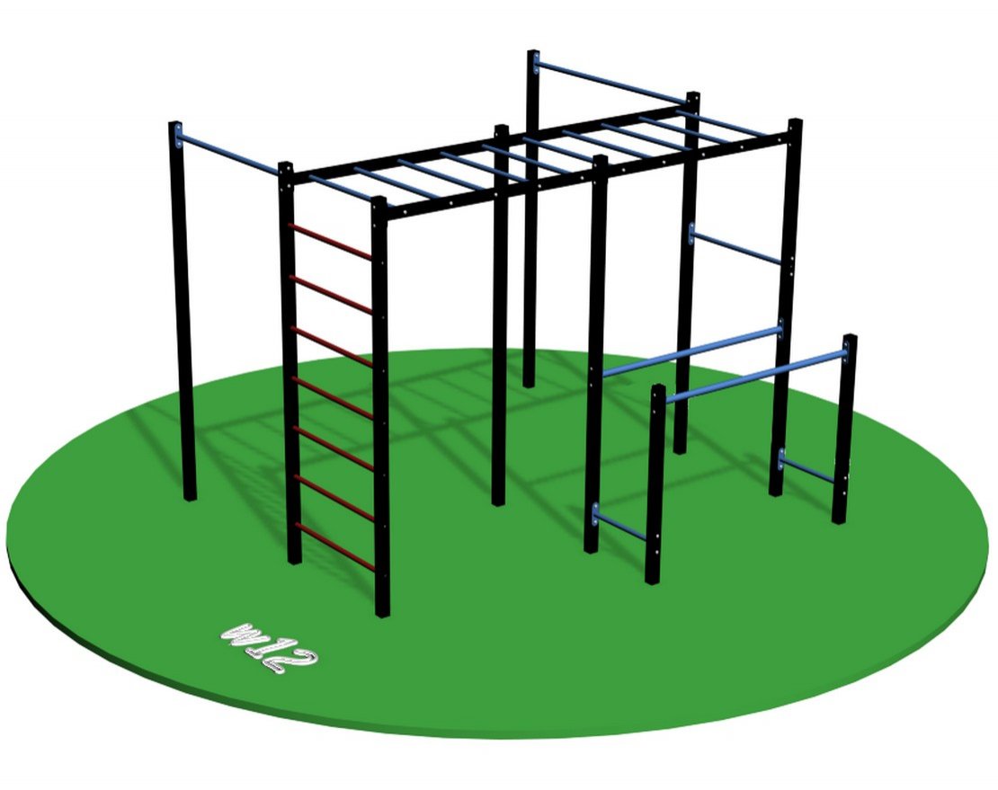 Workout w12 — это многофункциональный уличный спортивный комплекс, который можно установить как на даче, так и на придомовой территории. Комплекс включает в себя несколько снарядов: два турника, брусья, шведскую стенку и рукоход.