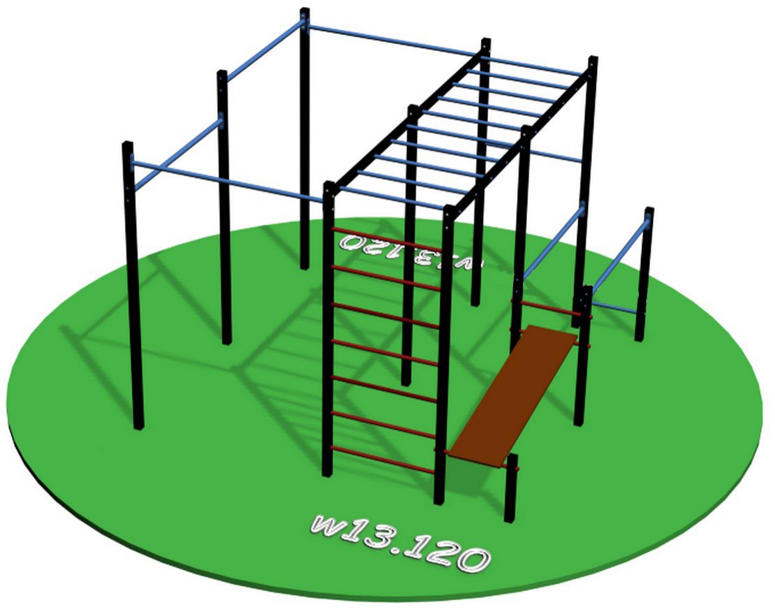 Workout w13.120 — это многофункциональный уличный спортивный комплекс, который можно установить как на даче, так и на придомовой территории. Комплекс предназначен для людей, которые хотят поддерживать хорошую физическую форму, но не имеют возможности посещать тренажёрный зал.