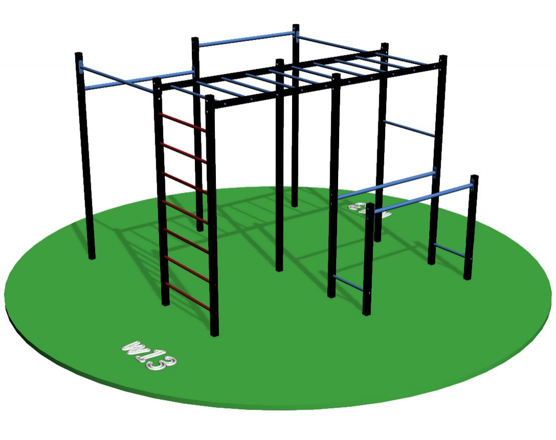 Workout w13 — это многофункциональный уличный спортивный комплекс, который можно установить как на даче, так и на придомовой территории. Комплекс включает в себя несколько снарядов, которые помогут вам поддерживать хорошую физическую форму: