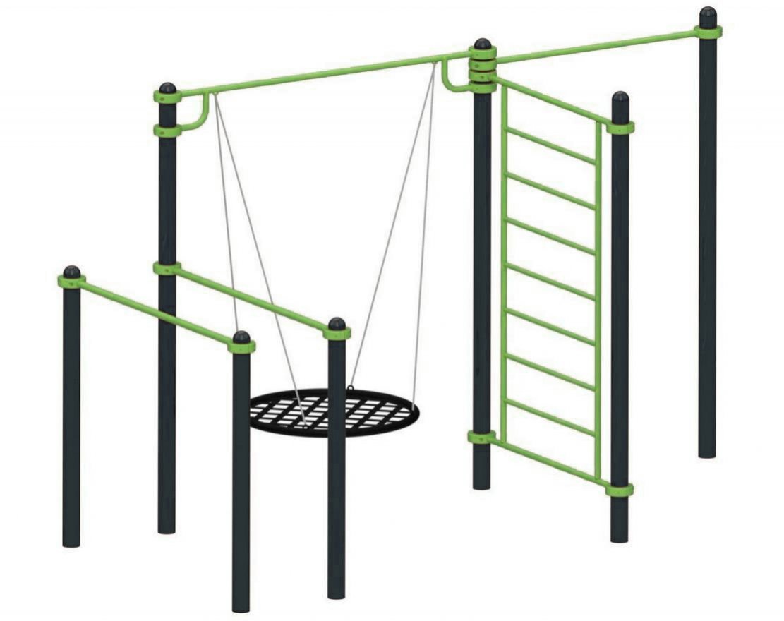 Все элементы комплекса легко устанавливаются и собираются. Благодаря хомутам, их можно регулировать по высоте и менять расположение в плане. Это позволяет адаптировать комплекс под индивидуальные потребности пользователей.